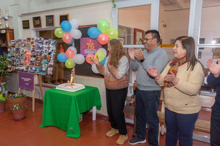 Como no podía faltar, el tradicional canto del feliz cumpleaños, seguido del soplado de velitas. La celebración fue acompañada por un cálido momento compartido entre todos los presentes, que incluyó chocolate caliente y porciones de torta, en una mañana que combinó afecto, historia y sentido de pertenencia.