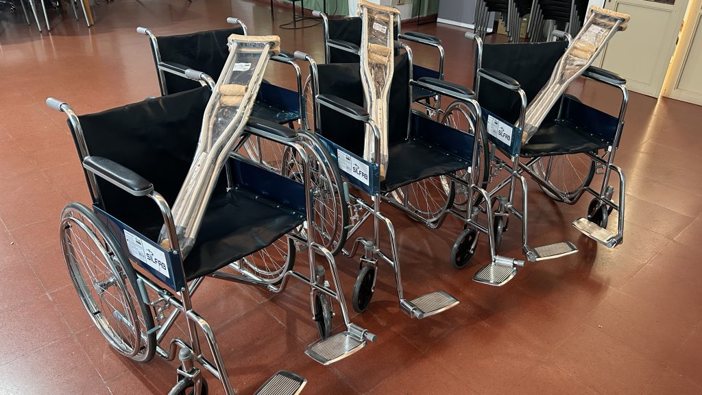 - Cinco sillas de ruedas nuevas, y