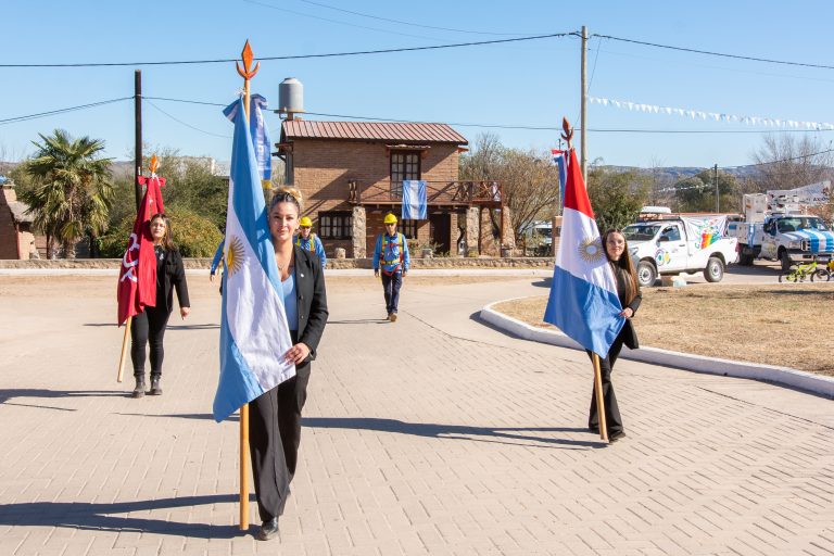 El acto protocolar, que tuvo lugar en la plaza principal de la localidad (Inti-Co), contó con la entonación del Himno Nacional Argentino, palabras alusivas a la fecha y la participación destacada de los alumnos de cuarto grado que realizaron su promesa a la bandera, en un momento de profunda significación para toda la comunidad.
