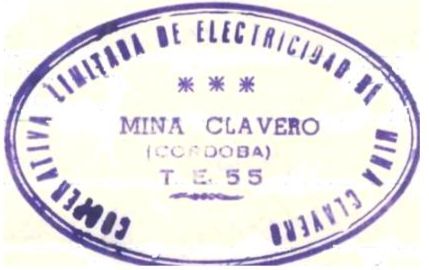 N. de la R.: Uno de los primeros sellos de la Cooperativa Limitada de Electricidad de Mina Clavero que se utilizaba para la firma de actas y documentación, es el que se exhibe a continuación, donde consta el número telefónico de la entidad: el 55.
