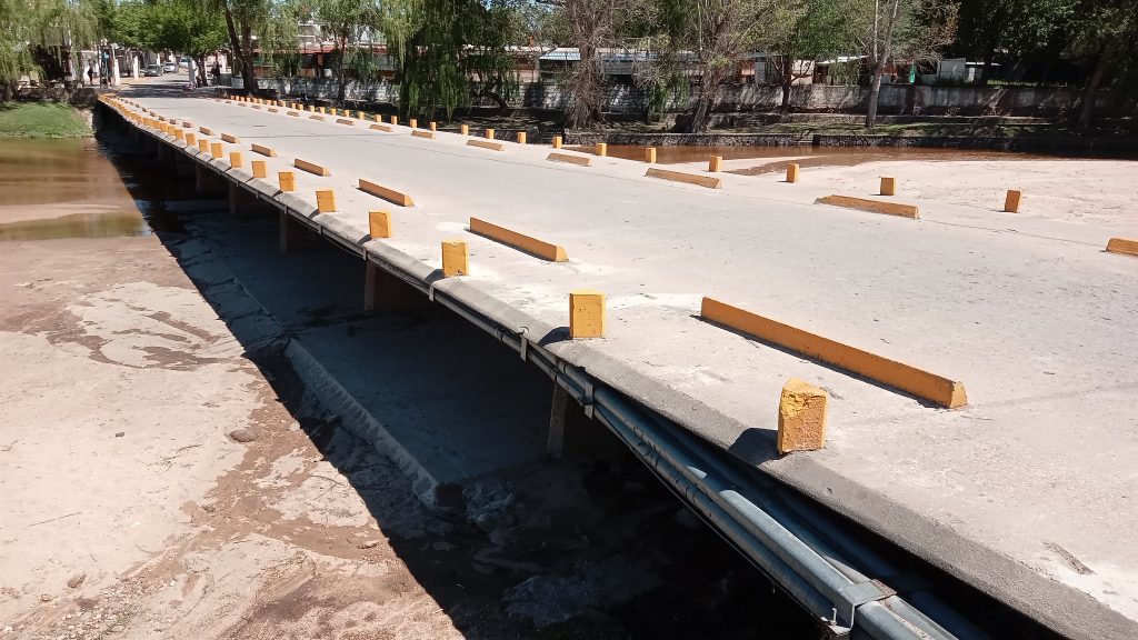 N. de la R.: El llamado puente sumergible de Mina Clavero es el que conecta la Avda San Martín (Norte) con Avda San Martín (Sur), fue construido sobre el vado antiguo e inaugurado en Abril de 1945 por lo que al momento de dichos festejos el puente tenía solamente 6 años de existencia. Foto: El “Puente Sumergible” hoy; en Abril de 2025 cumplió 80 años de vida
