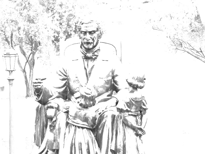 N. de la R.: La Plaza Grand Bourg está ubicada en el barrio de Palermo de la ciudad de Buenos Aires y lleva ese nombre en recuerdo a la casa de Grand Bourg -en la comuna de Evry a 25 km de Paris-, en la que vivió el prócer durante 12 años y hasta su traslado a Boulogne Sur Mer, lugar donde falleció. En esta plaza se encuentra el único monumento a José de San Martín que lo muestra de civil, ya anciano, junto a sus dos nietas. La obra se llama El Abuelo Inmortal y el autor de la misma fue el escultor e ingeniero argentino Angel Eusebio Ibarra García (1892-1972) promovida según Ley 13.661 del Gobierno de la Nación Argentina sancionada el 30 de Setiembre de 1949. Foto: Ilustración del Monumento al General José de San Martín en la Plaza Grand Bourg de la ciudad de Buenos Aires