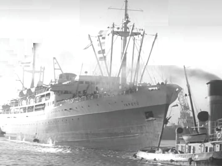 N. de la R.: El “Vapor Yapeyú”, se refería a un barco que, a mediados del siglo XX, fue símbolo de la inmigración argentina. Fue botado en Octubre de 1950 en Holanda, y entregado a la Flota Argentina de Navegación de Ultramar (FANU) en Abril de 1951, comenzando su servicio como buque de línea con rutas a Europa, que incluía destinos como Hamburgo, Vigo, Ámsterdam, Las Palmas y Río de Janeiro. Inicialmente se usó para transporte de carga y pasajeros, y fue el primer barco argentino en dar la vuelta al mundo, aunque este crucero ocurrió en 1956-1957, de allí que se lo conoció como “el transatlántico”. La llegada del barco al puerto de Buenos Aires solía ser un acontecimiento importante, lleno de emoción y carteles de bienvenida para recibir a los seres queridos. En 1961 fue transferido a la ELMA (Empresa Líneas Marítimas Argentinas) En 1968, fue vendido para convertirse exclusivamente en un buque de transporte ganadero. Por otras empresas navieras que lo adquirieron y utilizaron, cambió de nombre a “Petrel” y luego a “Cremona”, finalmente como “Iran Cremona” en 1976. Fue desguazado en Taiwán en 1980. Foto: el Vapor Yapeyú, en uno de sus arribos al muelle del puerto de Buenos Aires según fuente obtenida del Archivo General de la Nación
